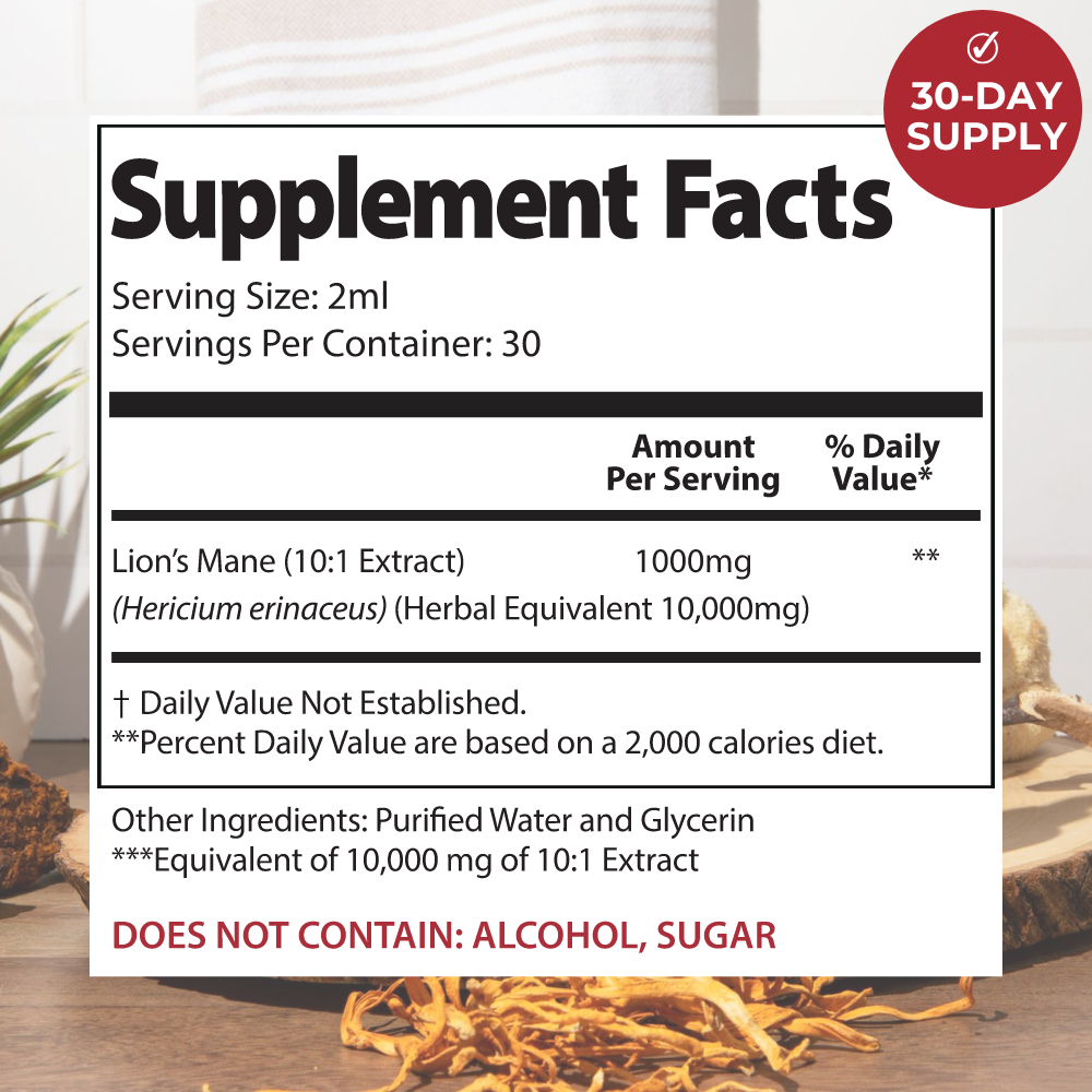 10,000mg of Wild Lion's Mane / Serving (Equivalent of 10,000mg of Extract)